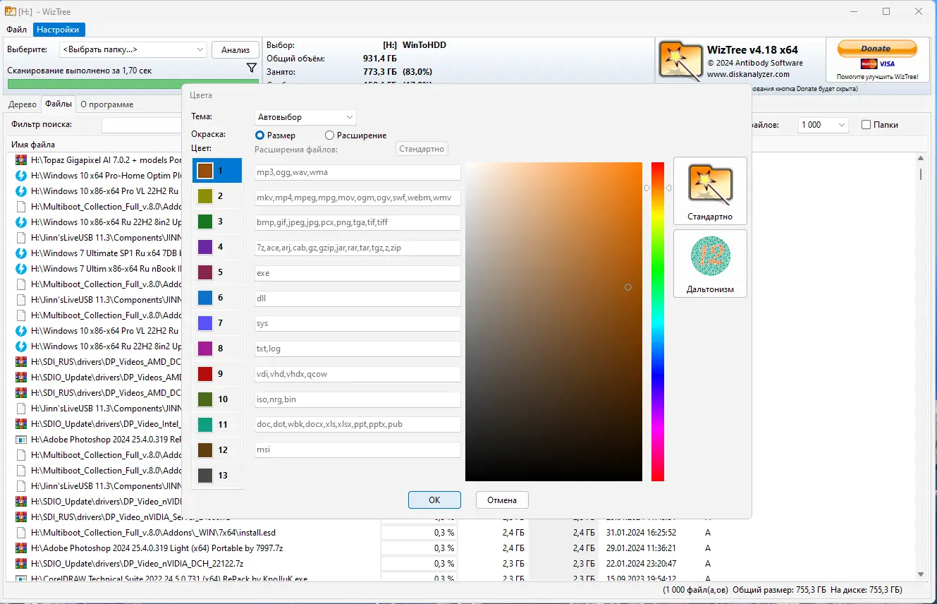 WizTree — это эффективное решение для управления дисковым пространством на компьютере. Утилита способна проанализировать содержимое жёсткого диска за считанные секунды, что особенно полезно при необходимости освободить место. Благодаря прямому доступу к MFT (Master File Table), программа минует стандартные методы обхода файловой системы, что значительно ускоряет процесс.