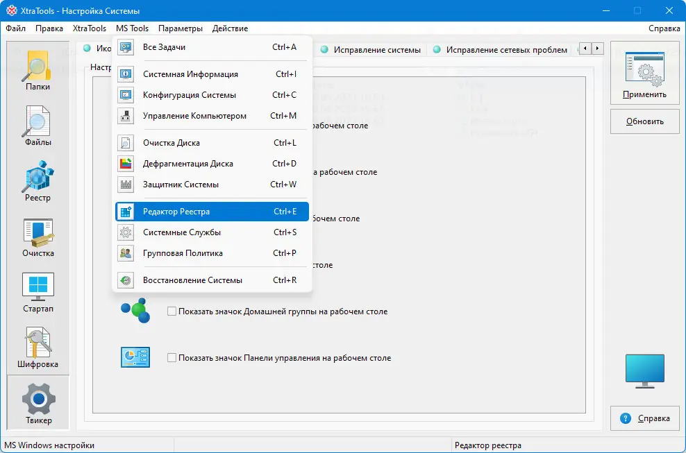 Каждый модуль XtraTools работает автономно, но в совокупности они создают целостную систему ухода за компьютером.