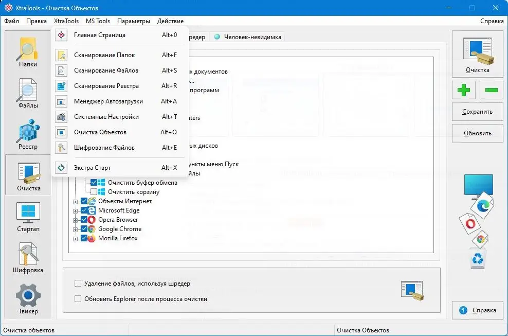 XtraTools — это комплексная утилита для тонкой настройки и оптимизации операционной системы Windows, объединяющая в себе набор инструментов для очистки реестра, управления автозагрузкой, шифрования данных и мониторинга системных ресурсов. Программа помогает ускорить работу компьютера, освободить дисковое пространство и повысить стабильность системы за счёт регулярного обслуживания ключевых компонентов. Подходит как для новичков, так и для продвинутых пользователей, стремящихся держать систему в идеальном состоянии.