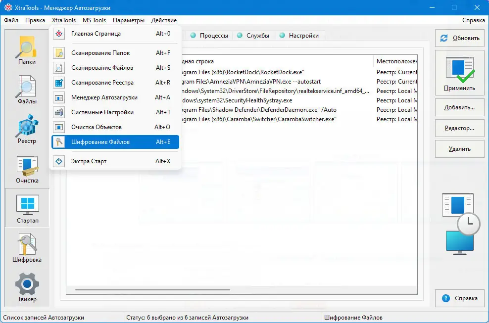 XtraTools — это мощный и компактный набор системных утилит для глубокой оптимизации операционной системы Windows, обеспечивающий стабильность, высокую производительность и безопасность компьютера. Программа объединяет в себе инструменты для очистки реестра, управления автозагрузкой, шифрования файлов и мониторинга ресурсов системы. Благодаря продуманной архитектуре и интуитивному интерфейсу, XtraTools подходит как для рядовых пользователей, так и для тех, кто ищет pro-решения в области системной оптимизации.