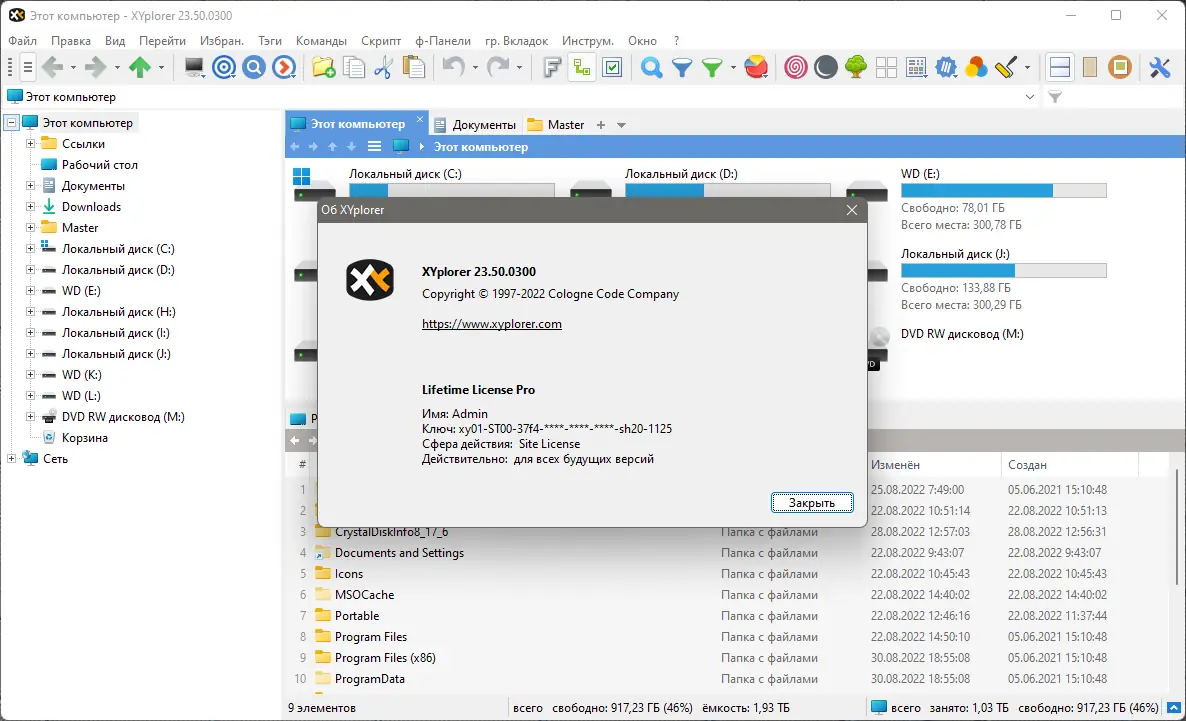 XYplorer — мощный и гибкий файловый менеджер с поддержкой вкладок, продуманным интерфейсом и широкими возможностями настройки, ориентированный на эффективную работу с файловой системой. Программа отлично подходит как для повседневного использования, так и для профессиональных задач, требующих быстрого доступа к файлам и папкам. Благодаря своей портативности и отсутствию следов в системе, она идеально работает с USB-накопителей.