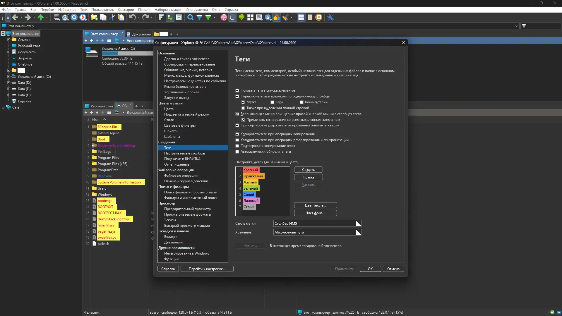 - Поддержка тегов для файлов, что упрощает их категоризацию и поиск по ключевым словам
