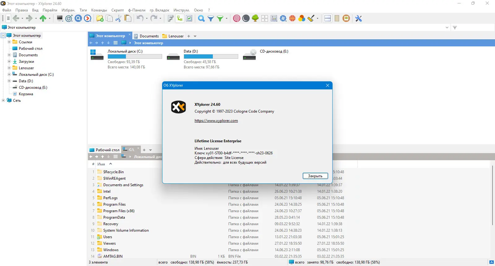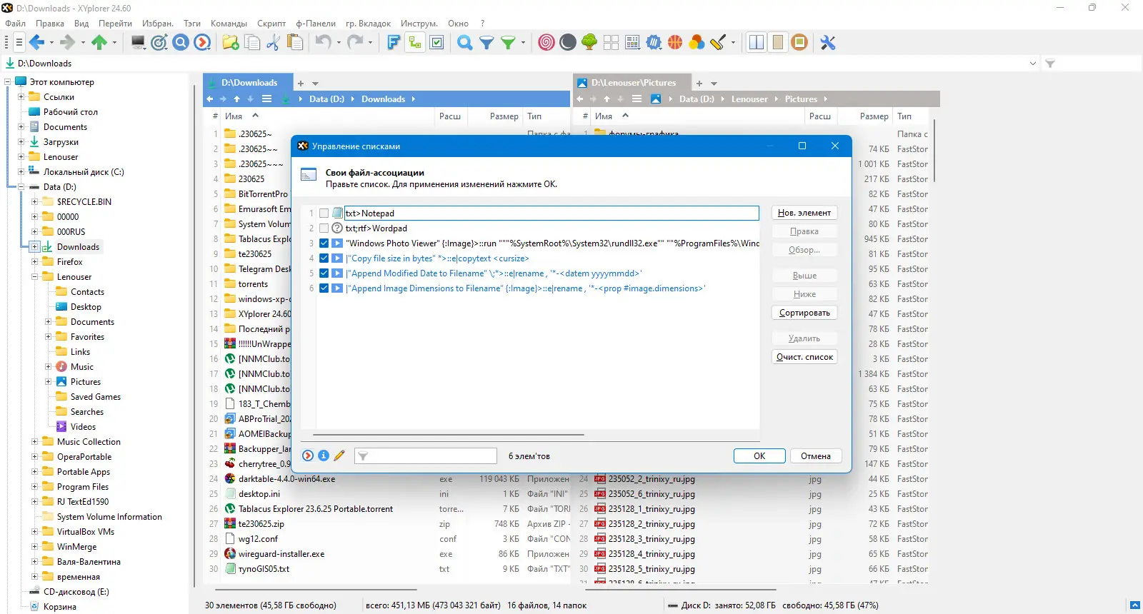 XYplorer — это мощный и гибкий файловый менеджер с поддержкой вкладок, созданный для эффективной навигации по файловой системе. Программа предлагает расширенные функции поиска, просмотр без открытия файлов, встроенные инструменты для работы с метаданными и возможность полной настройки интерфейса. Благодаря своей портативной природе и высокой производительности, она становится отличной альтернативой стандартному проводнику Windows.