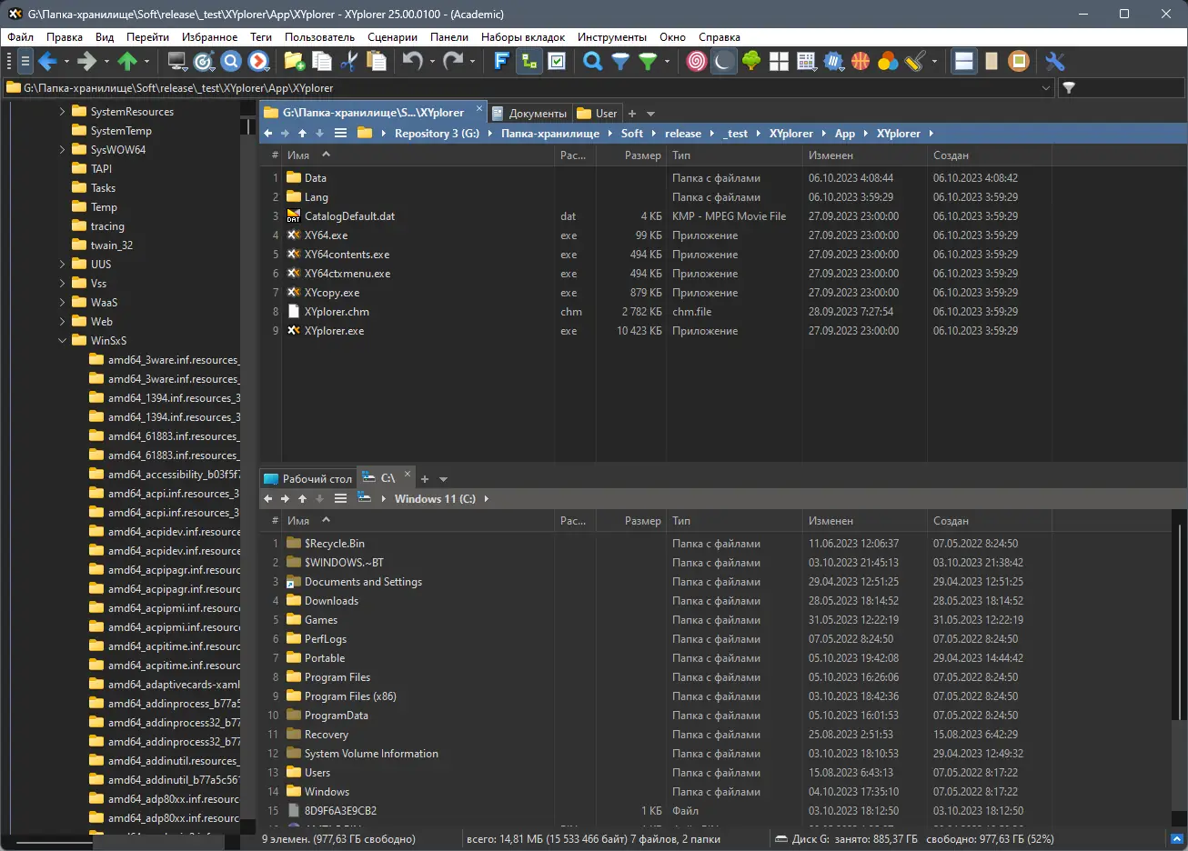 XYplorer представляет собой альтернативу стандартному Проводнику Windows, ориентированную на пользователей, которым необходимы дополнительные возможности при работе с файловой системой. В отличие от базового менеджера, он поддерживает мультивкладочный интерфейс, позволяя одновременно управлять несколькими каталогами без необходимости переключения между окнами. Программа предлагает расширенные функции поиска по содержимому, метаданным и атрибутам файлов, а также встроенные средства предварительного просмотра изображений, аудио и текстовых документов.