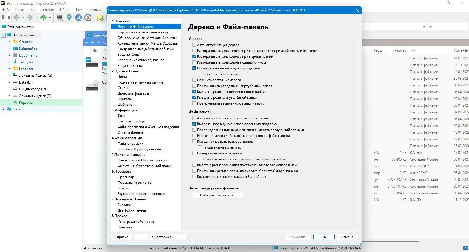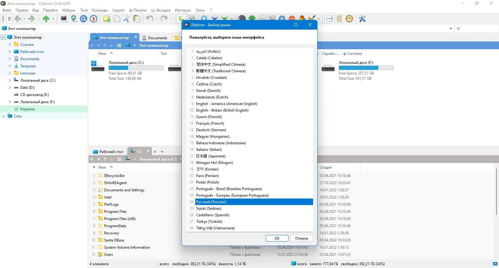 Работа с XYplorer интуитивно понятна с первого запуска. После открытия программы пользователь видит двухпанельный интерфейс с деревом каталогов слева и содержимым выбранной папки справа. Добавление вкладок осуществляется через контекстное меню или горячие клавиши, что позволяет быстро организовать рабочее пространство. Настройки языка, внешнего вида и поведения программы доступны через меню, где можно выбрать русский интерфейс и настроить отображение панелей.