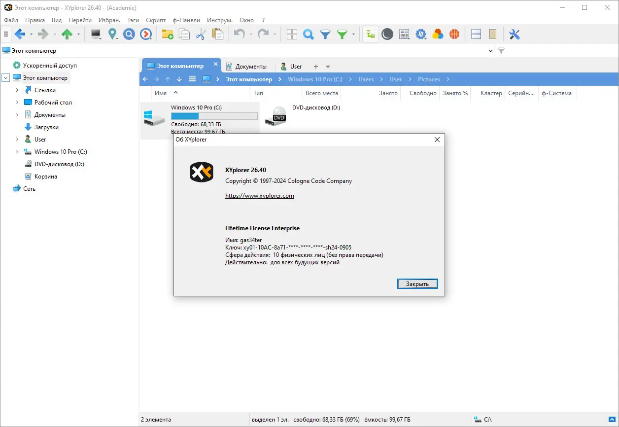 XYplorer предлагает современный подход к управлению файлами, заменяя стандартный проводник Windows на более функциональное и гибкое решение. Интерфейс программы интуитивно понятен, напоминая классический проводник, но при этом предоставляет значительно больше инструментов. Каждое окно отображается в виде вкладки, что позволяет одновременно работать с несколькими директориями без необходимости переключения между отдельными окнами. Поддержка горячих клавиш, настраиваемых панелей и встроенных инструментов анализа делает процесс работы с файлами более эффективным. Программа поддерживает работу с архивами, быстрым поиском, предпросмотром множества форматов и детальной информацией о каждом файле.