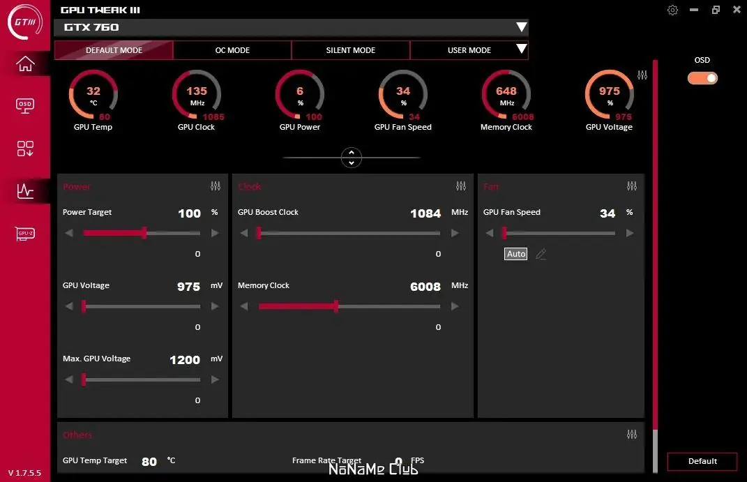 - Поддержка ручного и автоматического разгона графического процессора и памяти