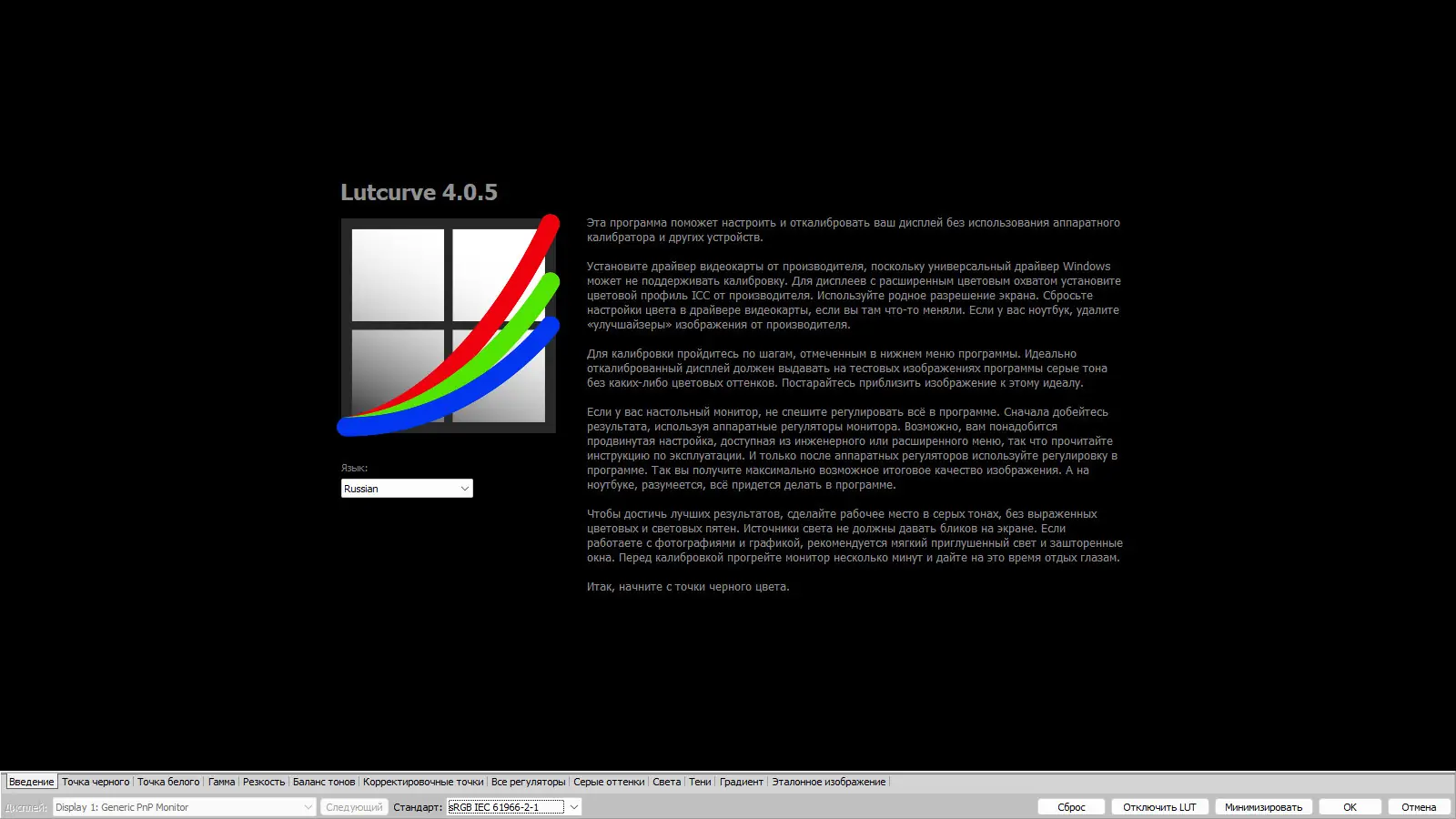 Atrise Lutcurve — это программное решение для точной калибровки мониторов без использования специализированного оборудования. Приложение позволяет настроить цветопередачу дисплеев типов LCD и CRT, обеспечивая соответствие ключевым параметрам: гамме, цветовой температуре, светимости и цветовому пространству. Основой технологии является использование человеческого восприятия серых оттенков, что позволяет достигать высокой точности настройки.