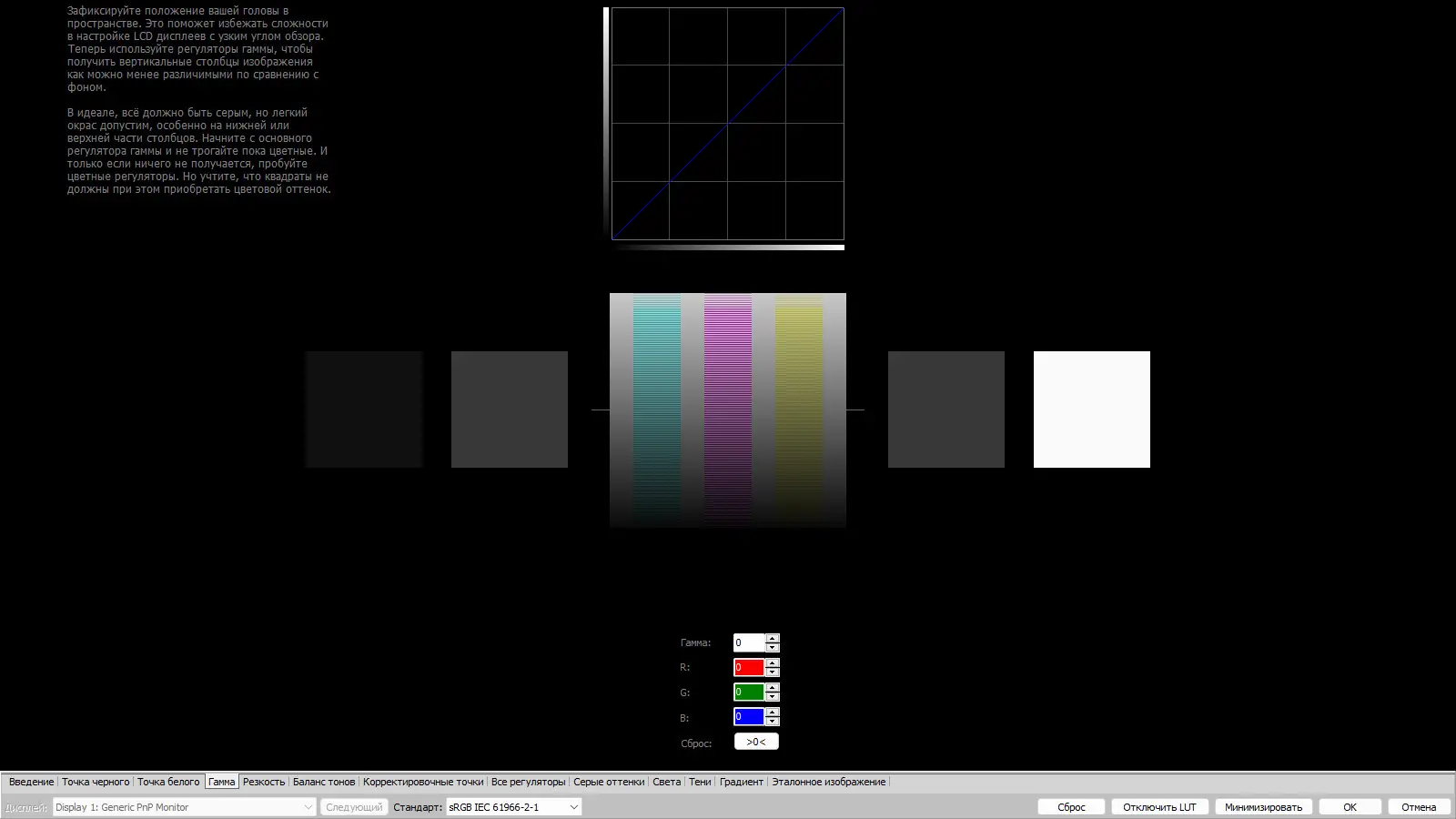 - Настройка гаммы в диапазоне от 0.1 до 5.0 с рекомендуемым значением 2.2