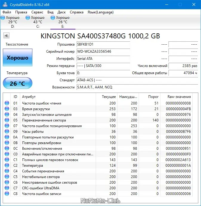 Описание CrystalDiskInfo