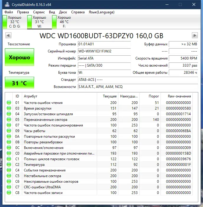Описание CrystalDiskInfo
