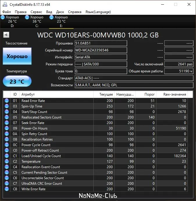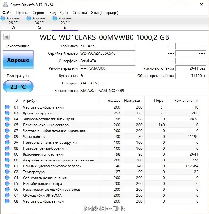 CrystalDiskInfo предоставляет детальную информацию о подключённых накопителях, включая модель, серийный номер, объём, интерфейс подключения и время наработки. Утилита поддерживает как внутренние, так и внешние устройства, в том числе через USB и IEEE 1394. Это делает её универсальным решением для диагностики любого типа дисков, установленных в системе.