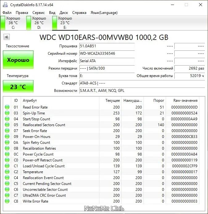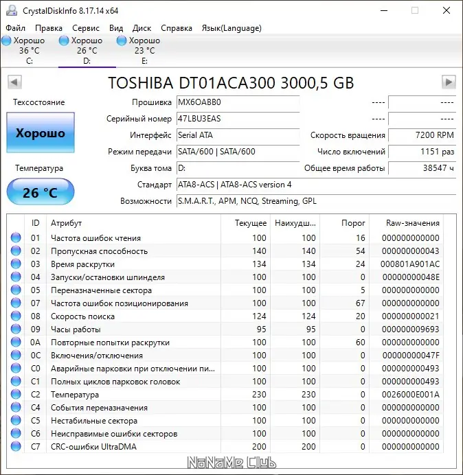 CrystalDiskInfo — это инструмент для диагностики и контроля за состоянием накопителей, включая как классические жёсткие диски, так и современные ssd. Программа считывает данные S.M.A.R.T., интерпретирует их и выводит общее состояние диска в виде оценки «здоровья». Пользователь получает доступ к информации о модели, объёме, интерфейсе подключения, времени наработки и других технических характеристиках.