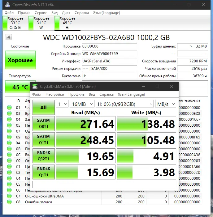 CrystalDiskInfo предоставляет детальную информацию о всех подключённых накопителях, включая модель, серийный номер, объём, интерфейс подключения и версию прошивки. Утилита поддерживает как внутренние HDD и SSD, так и внешние устройства, подключённые через USB или IEEE 1394. Система S.M.A.R.T. анализирует сотни параметров, и CrystalDiskInfo интерпретирует их в понятном виде, позволяя быстро оценить общее состояние диска.