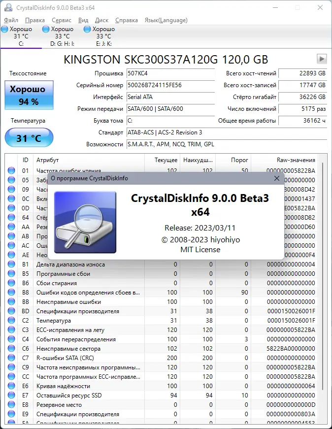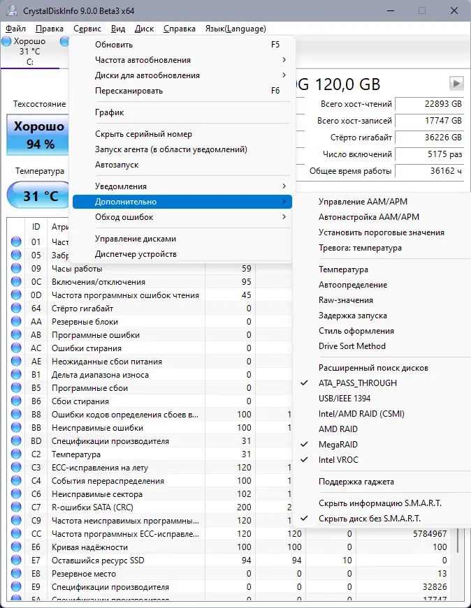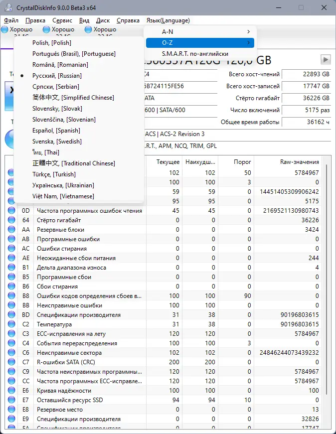 Описание CrystalDiskInfo
