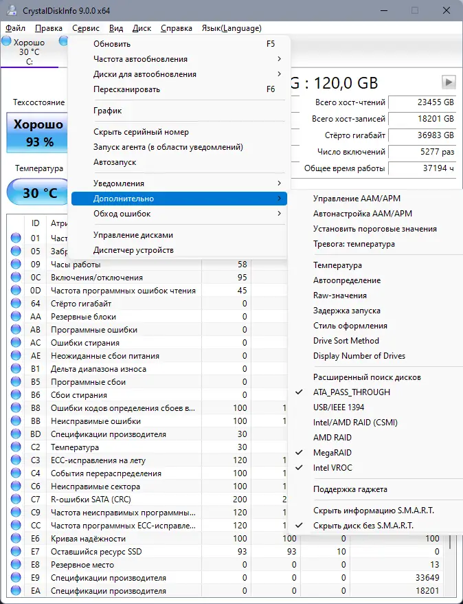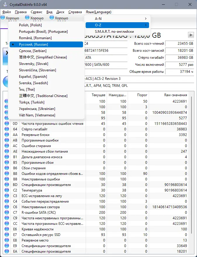 Описание CrystalDiskInfo