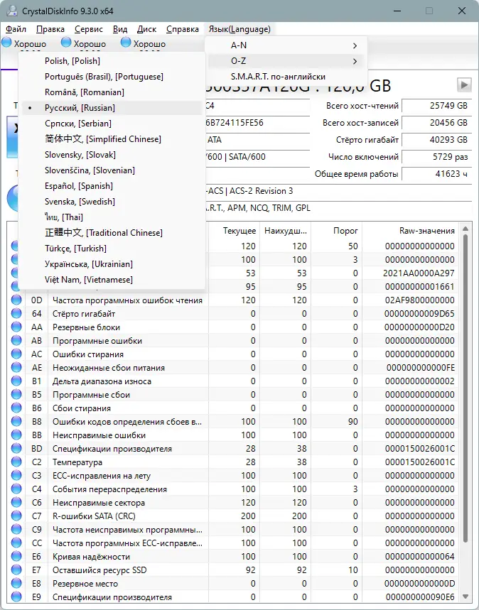 Описание CrystalDiskInfo