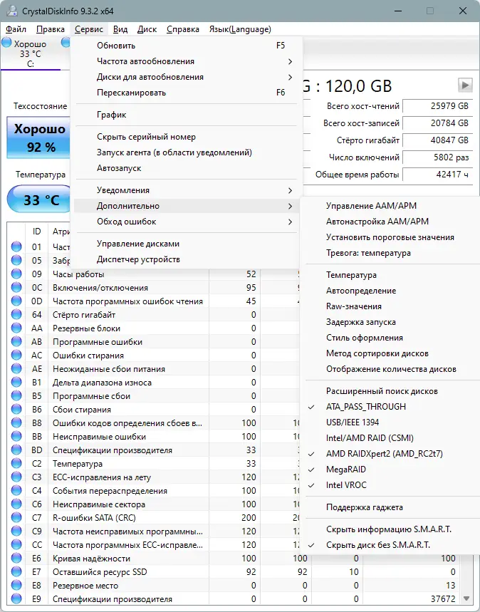 - Точный анализ состояния диска по данным S.M.A.R.T.
