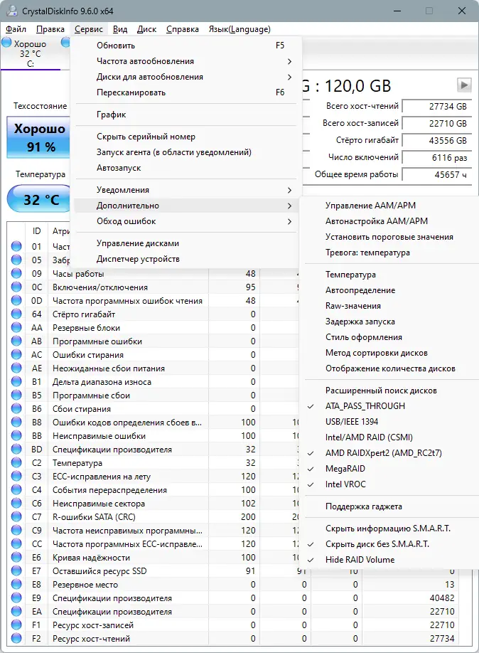 Описание CrystalDiskInfo