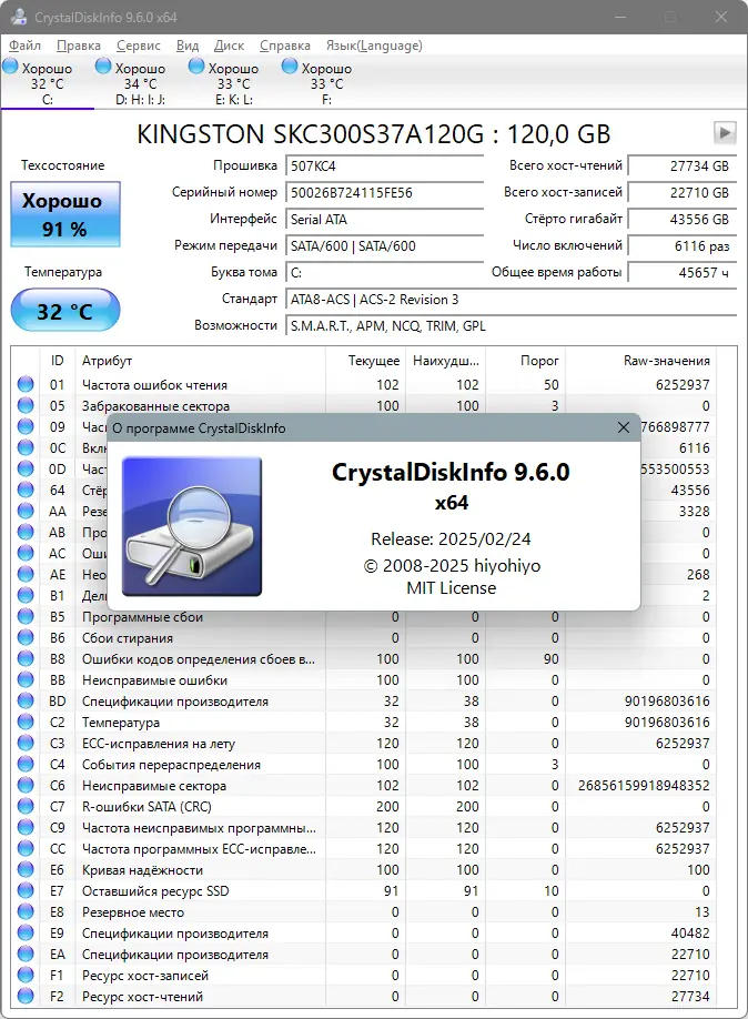 CrystalDiskInfo сочетает в себе функциональность, простоту и высокую точность анализа. Утилита поддерживает широкий спектр устройств, включая современные твердотельные накопители. Благодаря встроенной локализации на русском языке, пользователи могут легко ориентироваться в интерфейсе. Программа работает как в стационарном, так и в портативном режиме, что особенно удобно для диагностики нескольких компьютеров.