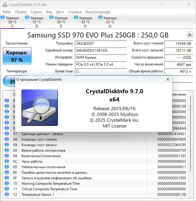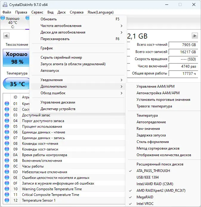 Описание CrystalDiskInfo