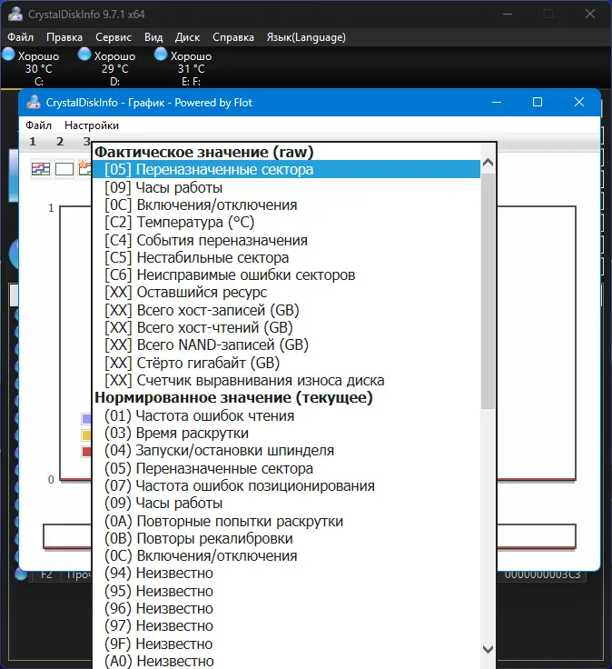 Интерфейс программы интуитивно понятен: при запуске отображается список всех подключённых накопителей с цветовой индикацией их состояния. Зелёный — всё в порядке, жёлтый — есть предупреждения, красный — критические ошибки. Каждый атрибут S.M.A.R.T. можно раскрыть для детального просмотра, а график показывает, как менялись показатели во времени. Настройки позволяют включить звуковое оповещение, изменить тему оформления или настроить поведение при загрузке системы. Для ssd отдельно отображается оценка износа и оставшийся ресурс, что особенно важно при работе с твердотельными накопителями.