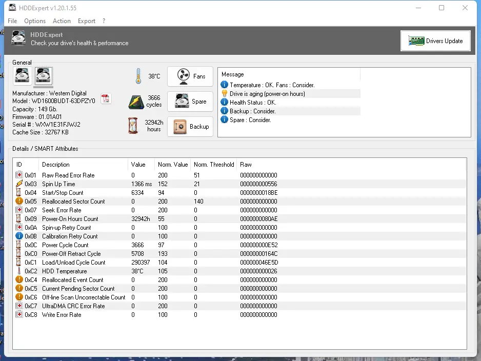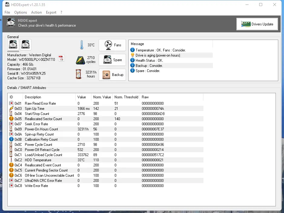 HDDExpert разработан для глубокого анализа состояния накопителей, используя данные технологии S.M.A.R.T., которая собирает информацию о физическом состоянии диска. Программа автоматически интерпретирует сложные атрибуты, такие как количество перезагрузок шпинделя, уровень ошибок чтения и износ ячеек SSD, представляя их в простом виде. Это позволяет даже новичкам быстро оценить, находится ли диск в нормальном состоянии или требует замены.