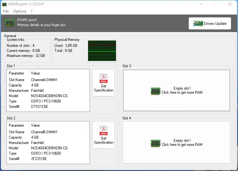 - Определяет, есть ли свободные слоты на материнской плате для возможного расширения.