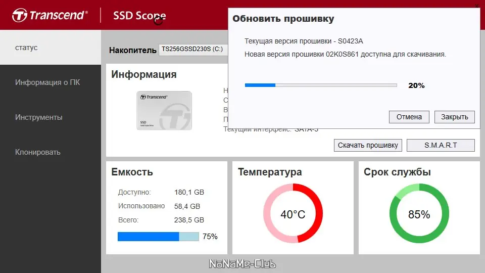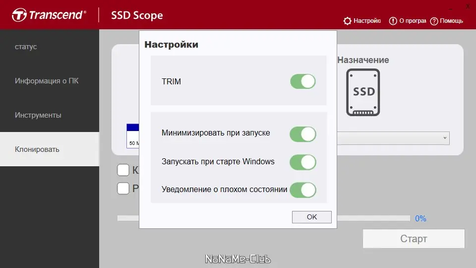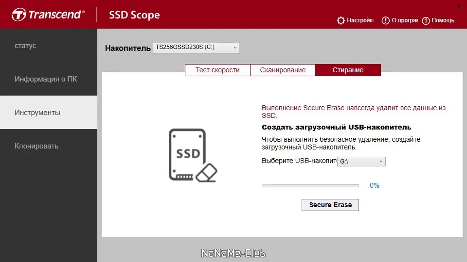 Transcend SSD Scope — это специализированное программное обеспечение для диагностики, мониторинга и обслуживания твердотельных накопителей Transcend. Приложение предоставляет детальную информацию о состоянии SSD, включая уровень износа, производительность и параметры S.M.A.R.T. Инструменты программы позволяют оптимизировать работу диска, безопасно удалять данные и переносить операционную систему на новый накопитель.