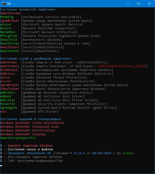 - Полное удаление Windows Defender, включая фоновые службы и драйверы