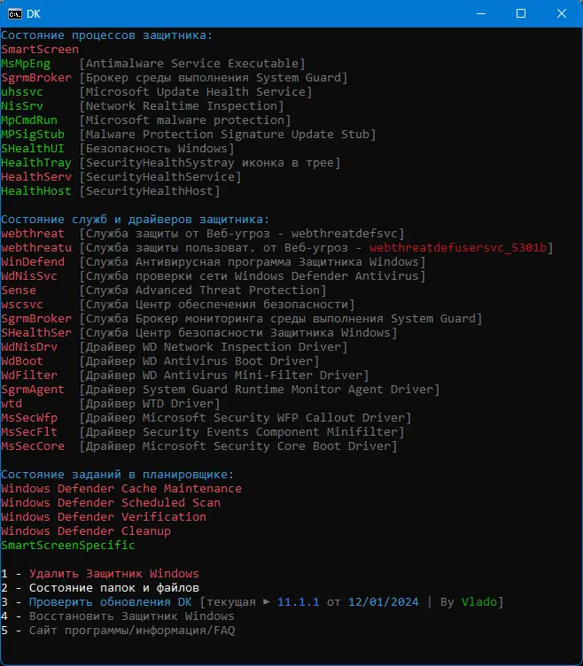 После использования DefenderKiller система больше не будет запускать процессы, связанные с Защитником, что может повысить производительность.