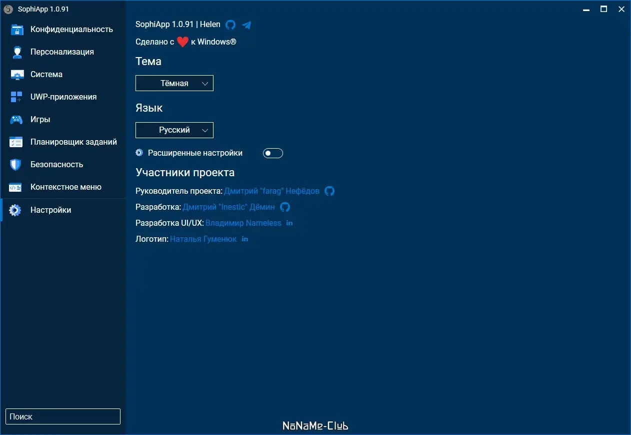 SophiApp — это современный графический инструмент для тонкой настройки операционных систем Windows 10 и Windows 11. Программа является наследницей популярного скрипта Sophia Script for Windows и предлагает более 130 оптимизаций, реализованных через официальные и документированные методы Microsoft. SophiApp полностью бесплатна, открыта и не вносит изменений, способных нарушить стабильность системы.