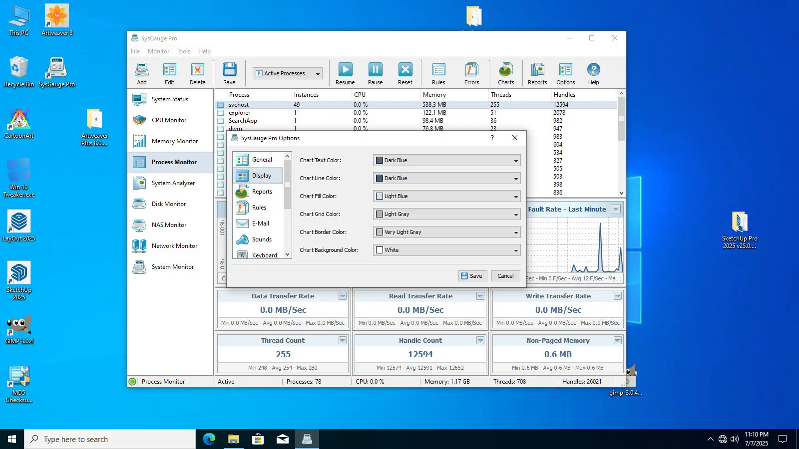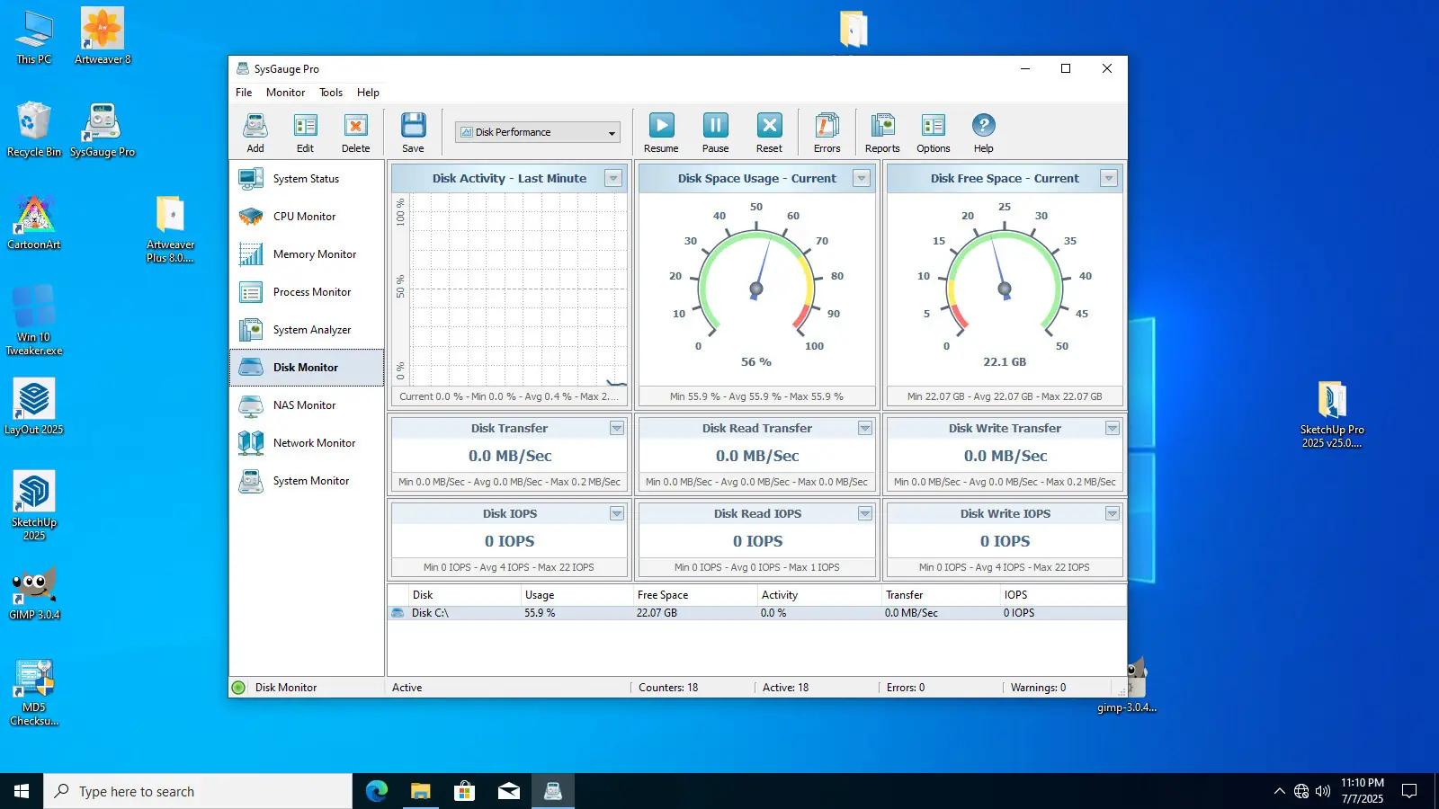 SysGauge представляет собой комплексное решение для диагностики и анализа производительности операционной системы, позволяя в режиме реального времени отслеживать ключевые параметры работы компьютера. Утилита поддерживает мониторинг загрузки центрального процессора, объема используемой и доступной оперативной памяти, скорости передачи данных по сети и активности дисковых подсистем. Особое внимание уделено детализации данных: пользователь может наблюдать за IOPS чтения и записи, скоростью обмена информацией с дисками и USB, а также эффективностью файловой системы.