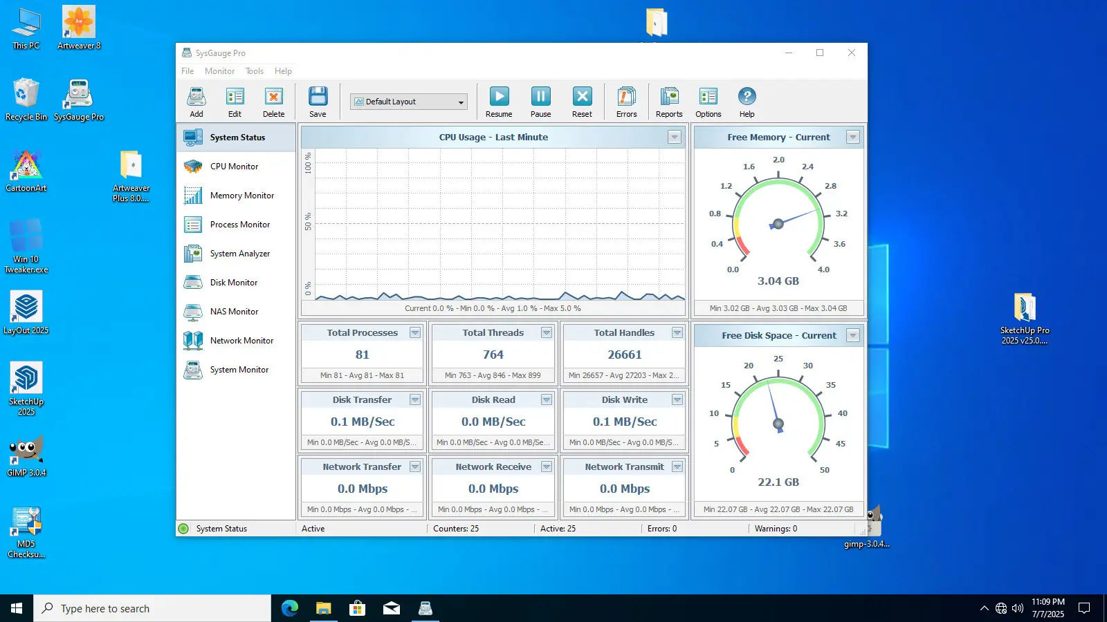 SysGauge — это мощная утилита для мониторинга производительности системы, обеспечивающая детальный контроль над состоянием ресурсов компьютера, включая загрузку процессора, использование памяти, активность дисков и сетевые параметры. Программа поддерживает как локальный, так и удаленный мониторинг, предоставляя данные в наглядной графической форме и позволяя экспортировать результаты в различные форматы. Благодаря гибкой настройке и расширенным возможностям анализа, инструмент подходит как для домашнего использования, так и для администрирования корпоративных систем.