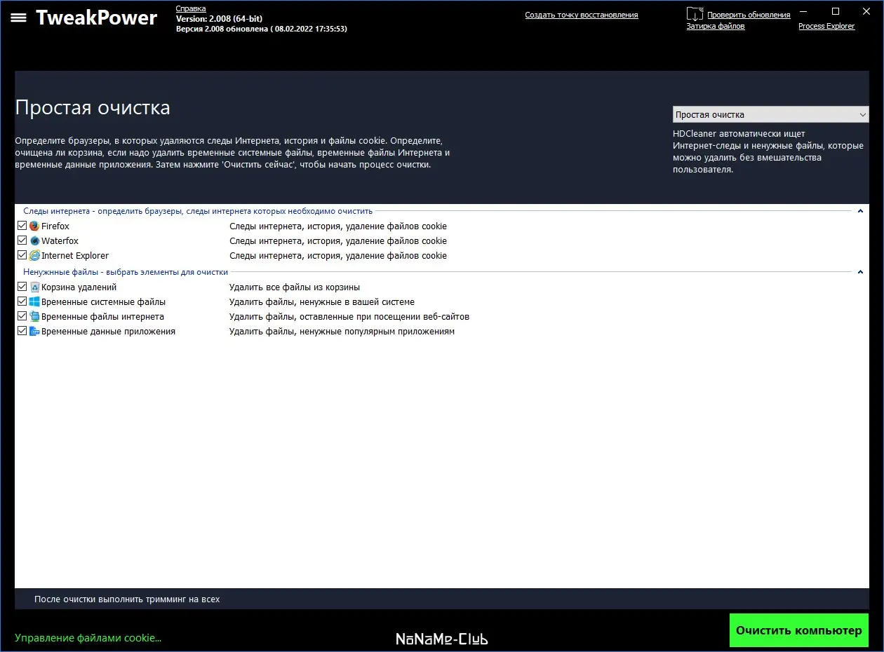 TweakPower представляет собой многофункциональное приложение, предназначенное для комплексной оптимизации операционной среды. Программа включает в себя модули для очистки системы от временных файлов, следов веб-активности и ошибок реестра, что положительно сказывается на скорости работы и стабильности системы. Она позволяет управлять автозагрузкой, контролировать фоновые процессы и настраивать параметры безопасности, обеспечивая прозрачность и контроль над поведением системы.