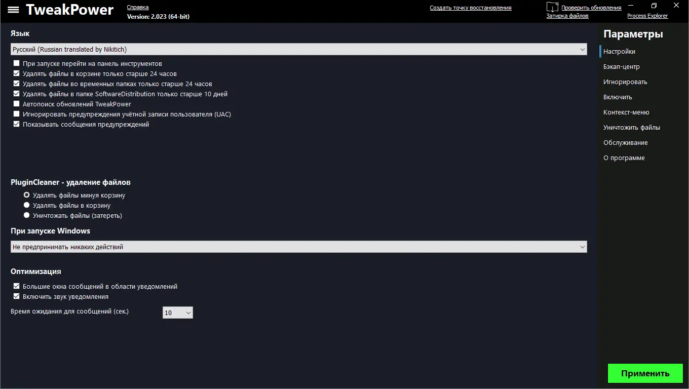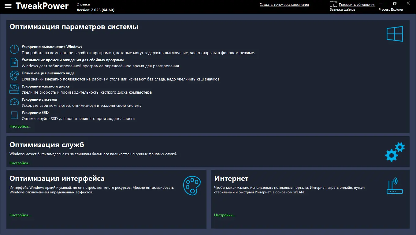 Как пользоваться TweakPower