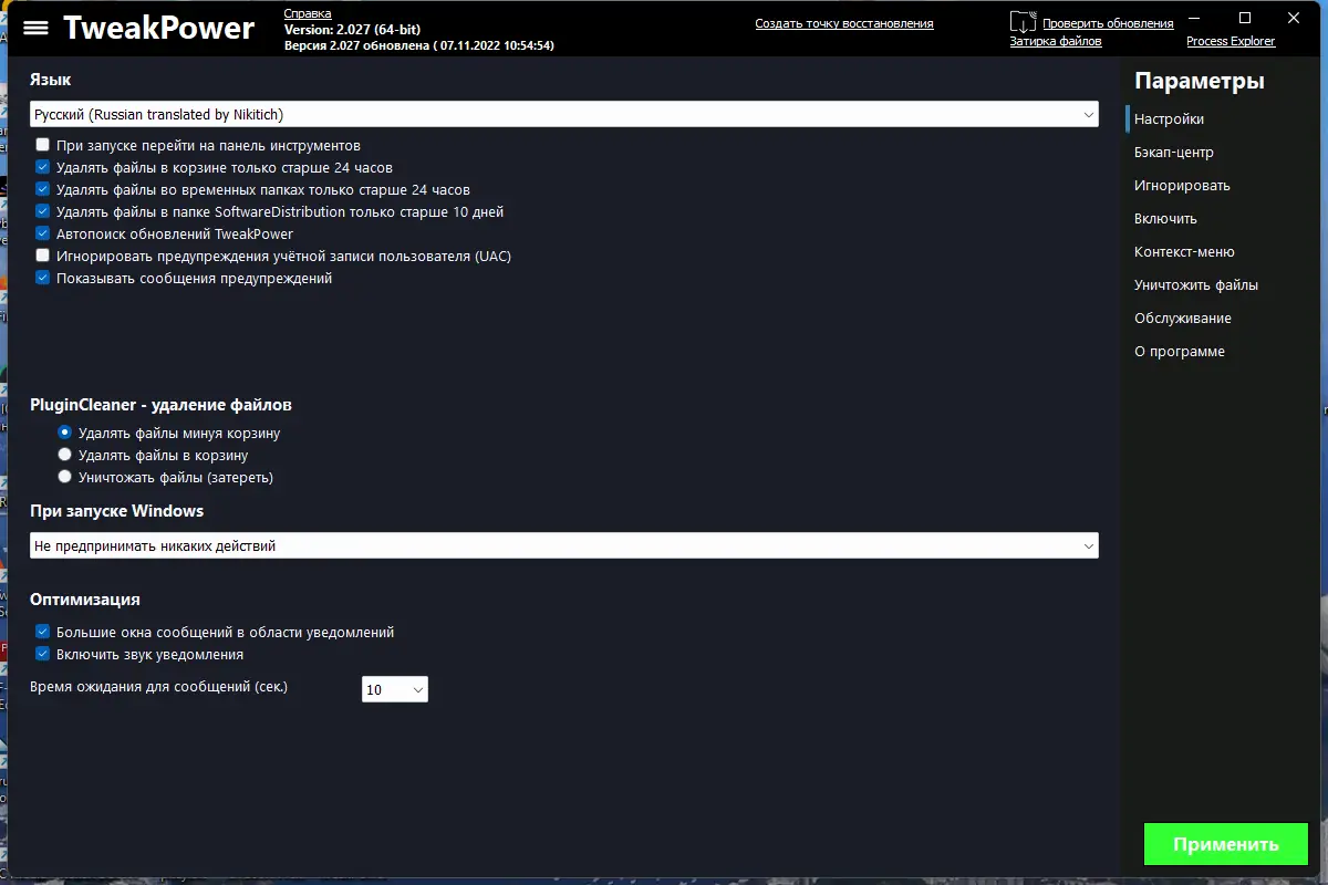 Как пользоваться TweakPower