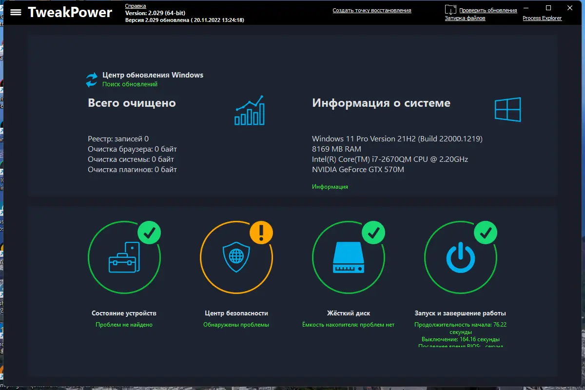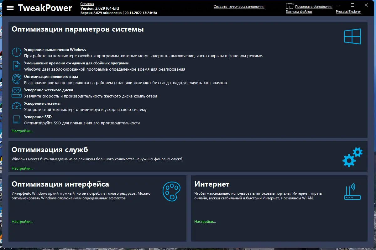 TweakPower — это комплексный инструмент для тонкой настройки, диагностики и повышения производительности операционной системы Windows. Программа объединяет множество функций по оптимизации системы, очистке реестра, управлению автозагрузкой и восстановлению после сбоев. С её помощью пользователь может быстро устранить накопившиеся ошибки, освободить дисковое пространство и настроить систему под свои задачи.