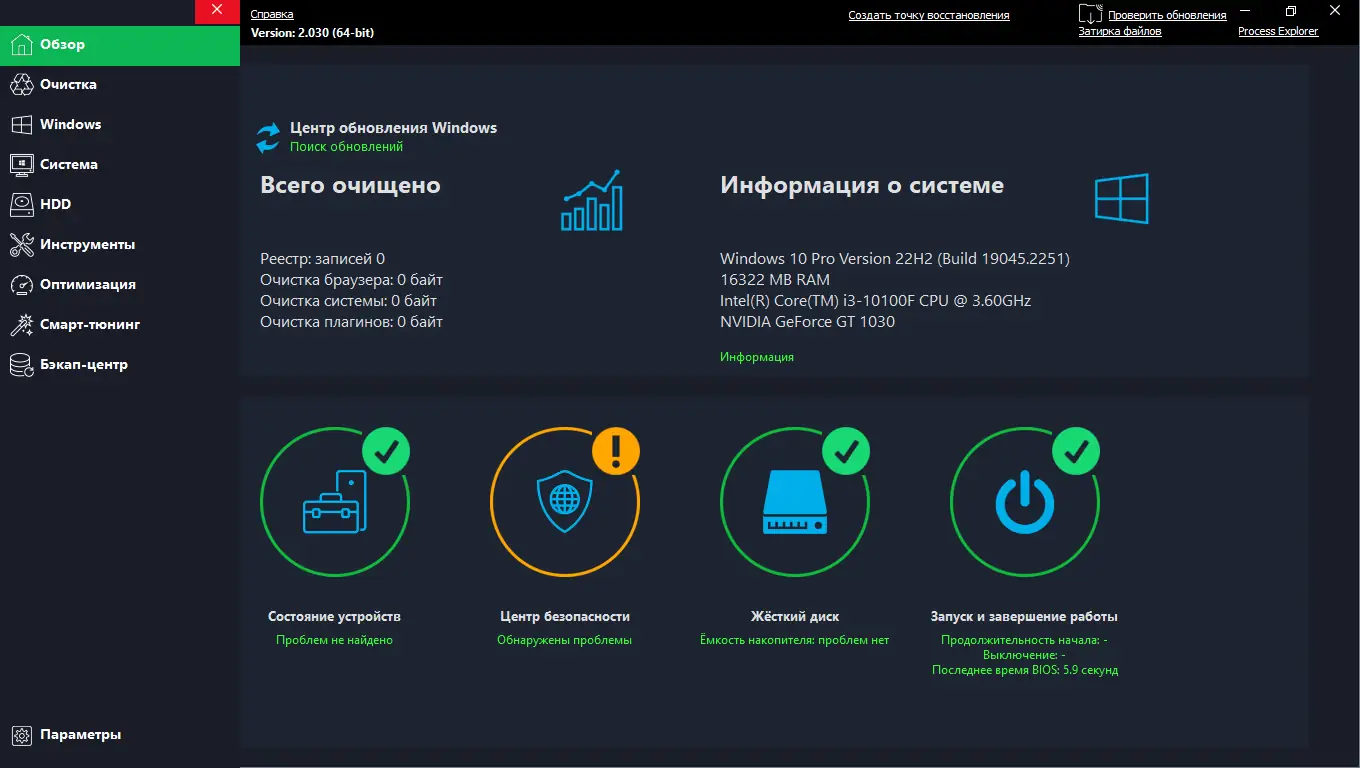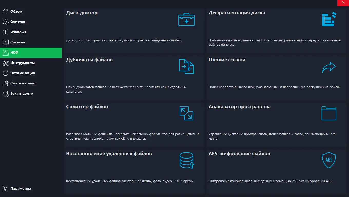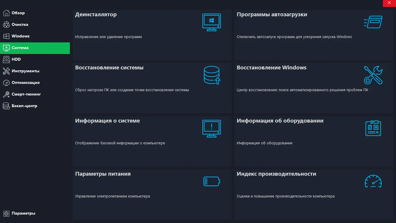 - Широкий набор инструментов для настройки и очистки системы в едином интерфейсе.