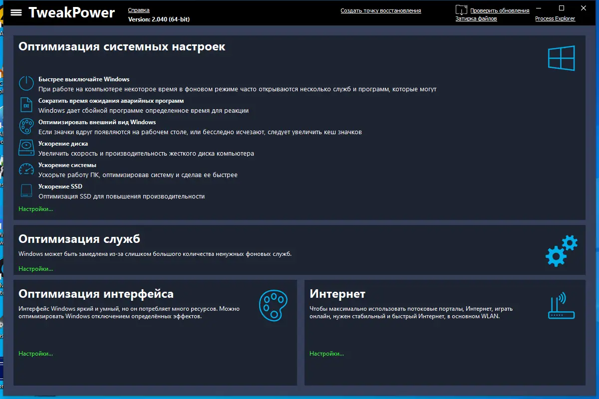 TweakPower представляет собой комплексное решение для оптимизации производительности компьютера под управлением Windows. Программа включает в себя широкий набор функций, направленных на улучшение стабильности, скорости и безопасности работы системы. Интерфейс организован интуитивно понятно, что позволяет быстро находить нужные инструменты даже без предварительной подготовки.