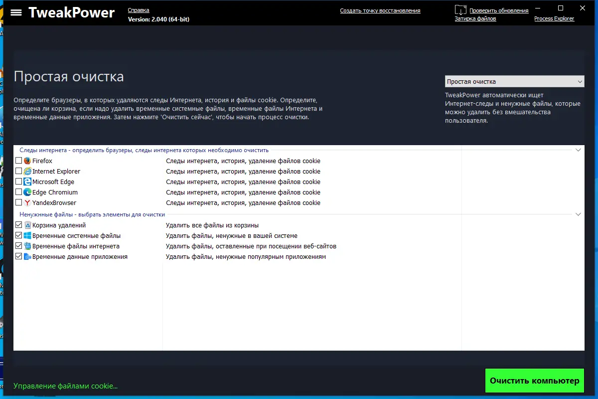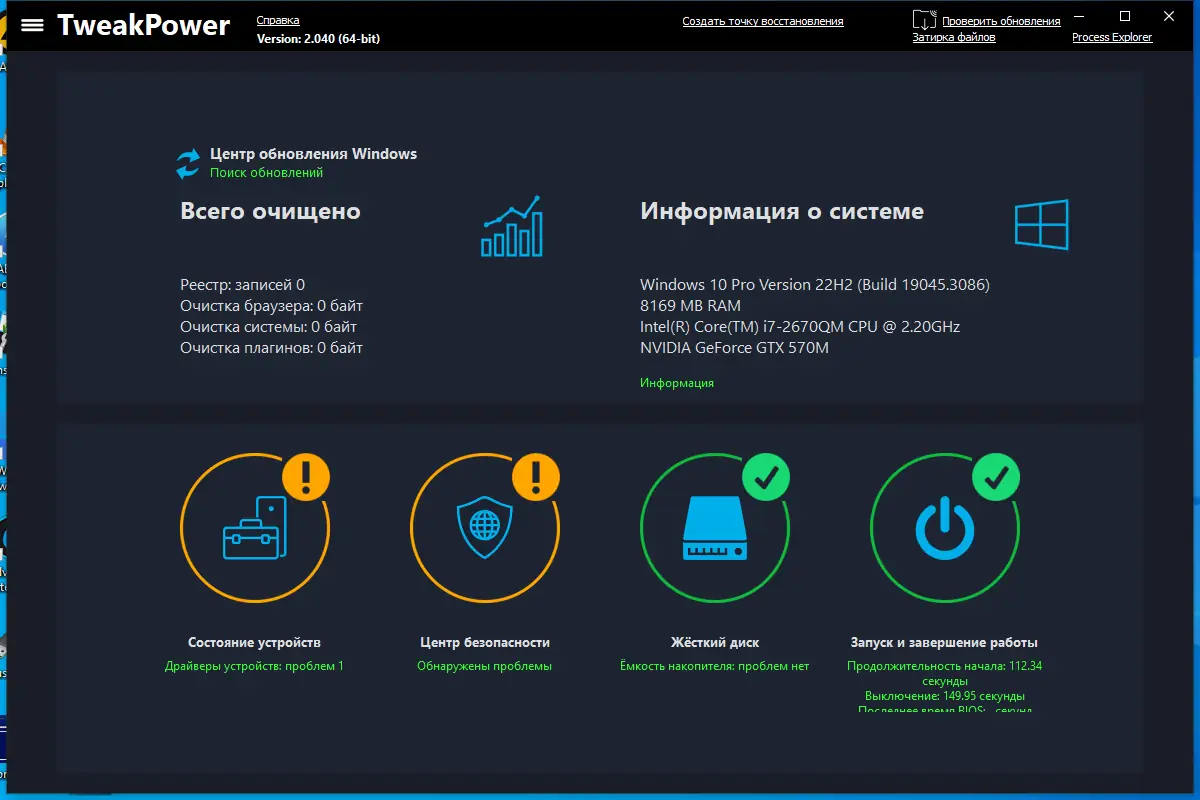 TweakPower — это многофункциональный инструмент для глубокой оптимизации, настройки и обслуживания операционной системы Windows. Программа объединяет в себе десятки утилит, позволяя очищать систему, ускорять работу компьютера, управлять автозагрузкой и исправлять ошибки. Подходит как для новичков, так и для продвинутых пользователей, желающих получить полный контроль над параметрами системы.