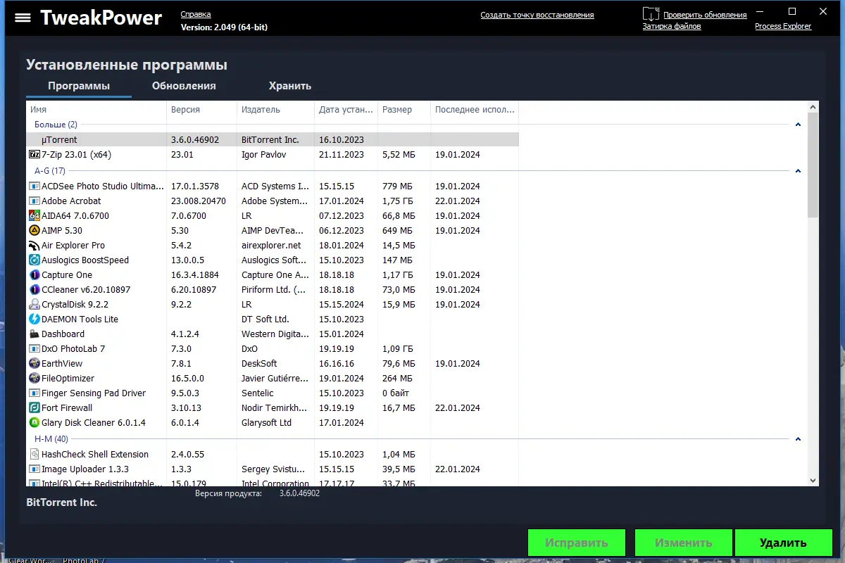 TweakPower предлагает широкий функционал, охватывающий ключевые аспекты системной оптимизации. Одним из главных преимуществ является портативность — версия Portable позволяет запускать утилиты с флешки без установки. Также отмечаются высокая скорость обработки данных и минимальное влияние на ресурсы во время работы. Программа регулярно обновляется, что подтверждается в версии 2.049, где устранены ошибки и улучшена эффективность очистки.