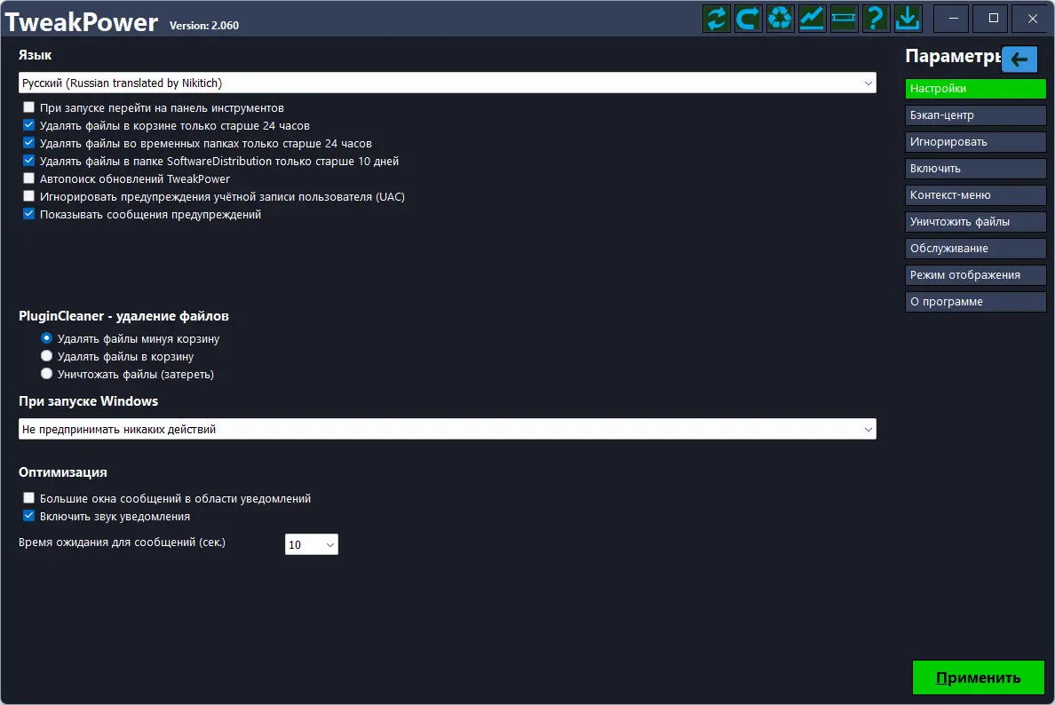 - Функция создания точек восстановления и резервного копирования критически важных настроек.