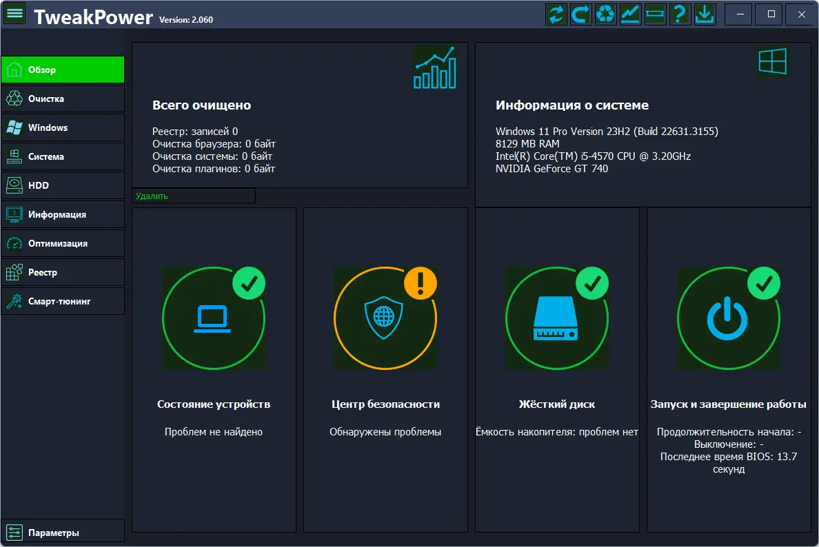 TweakPower — это многофункциональный инструмент для глубокой оптимизации и настройки операционной системы Windows, объединяющий десятки утилит в едином удобном интерфейсе. Программа позволяет ускорить работу компьютера, очистить систему от мусора, настроить автозагрузку, управлять фоновыми процессами и восстановить стабильность системы после сбоев. С её помощью можно провести комплексную диагностику, устранить ошибки реестра и дисков, а также усилить защиту конфиденциальных данных.