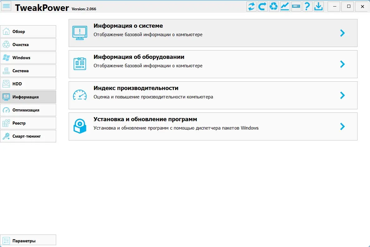 - Поддержка портативных версий, что позволяет использовать TweakPower с флеш-накопителя без установки.