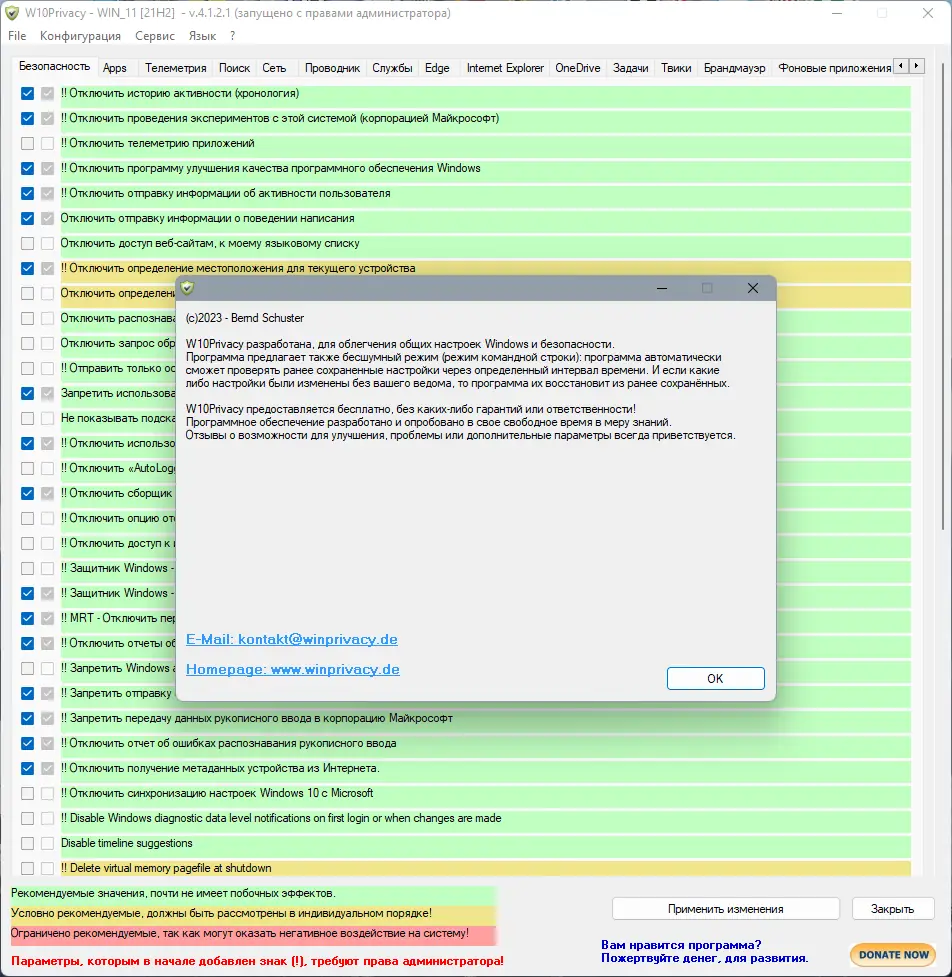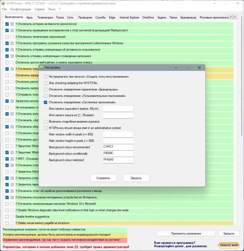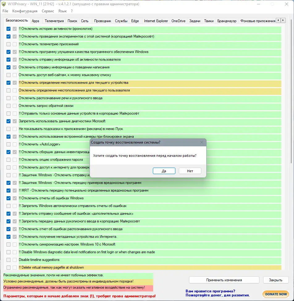 Как пользоваться W10Privacy