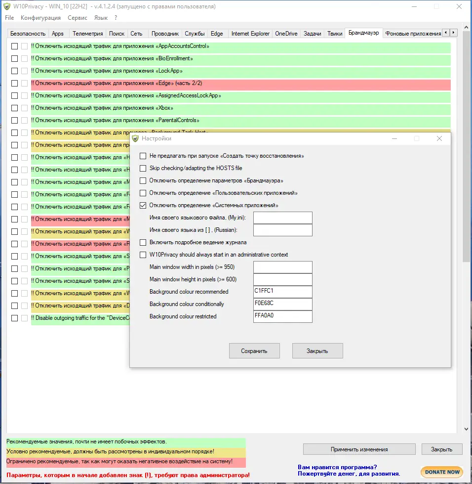 - Возможность настройки не только приватности, но и поведения системы, включая проводник и службы.