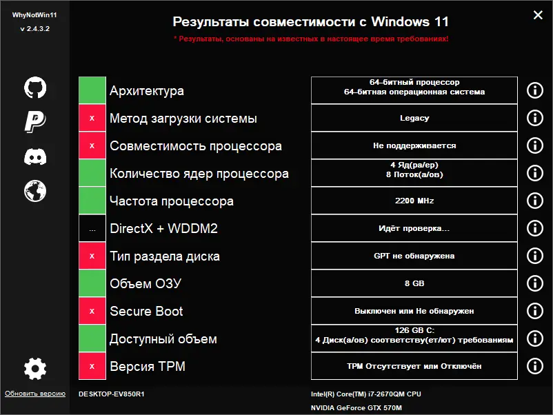WhyNotWin11 — это диагностический инструмент, разработанный для проверки аппаратной совместимости компьютера с операционной системой Windows 11. В отличие от официального ПК проверки здоровья от Microsoft, данная утилита предоставляет более детализированные сведения о каждом требовании и наглядно показывает, какие именно элементы конфигурации препятствуют установке. Программа анализирует версию BIOS, поддержку безопасной загрузки, наличие модуля TPM, а также соответствие процессора списку поддерживаемых моделей.