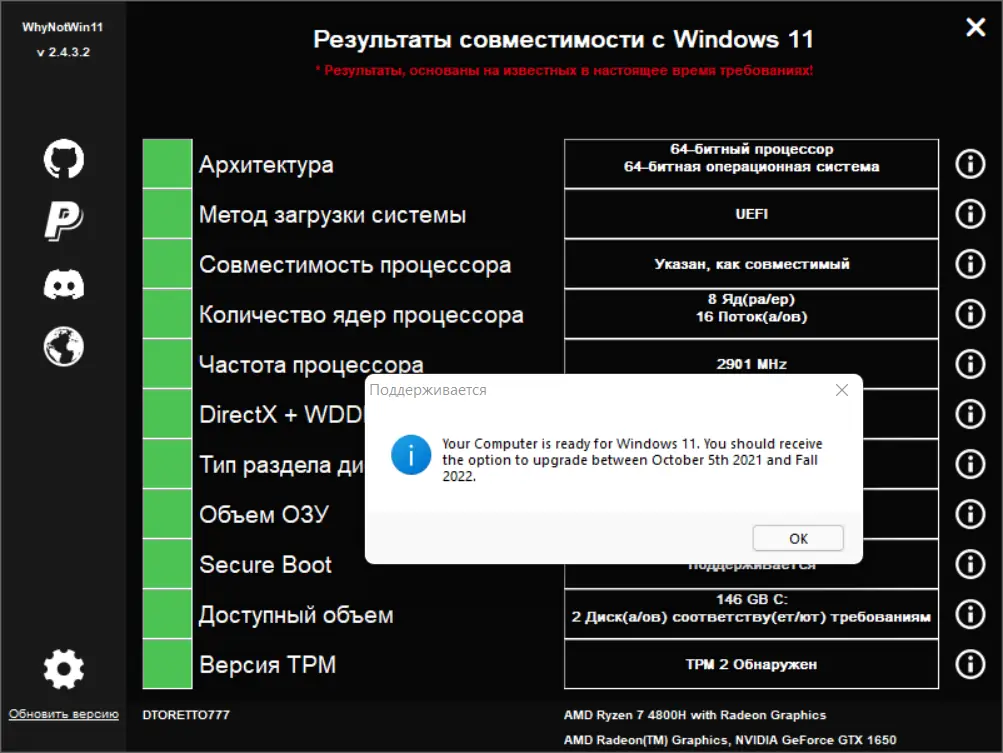 Утилита WhyNotWin11 позволяет быстро определить, соответствует ли ваше устройство системным требованиям для установки операционной системы Windows 11, анализируя процессор, объем ОЗУ, наличие TPM 2.0, а также совместимость чипсета и видеокарты. Программа отображает детальную информацию о каждом компоненте и указывает, какие именно элементы не соответствуют нормативам Microsoft. Это удобное решение для пользователей, планирующих переход на новую версию Windows.