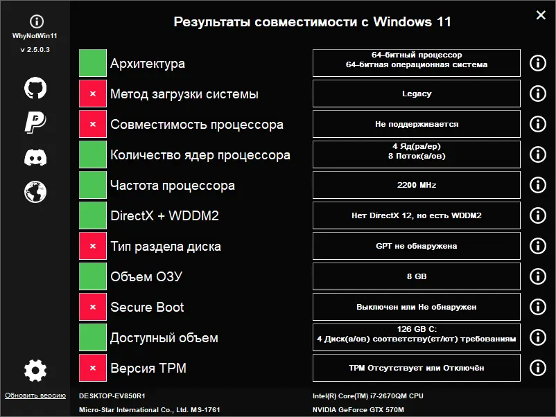 Утилита WhyNotWin11 позволяет быстро определить, соответствует ли ваше оборудование системным требованиям Windows 11, и выявить возможные проблемы с совместимостью. Программа анализирует процессор, объем оперативной памяти, наличие TPM 2.0, тип накопителя и другие ключевые параметры. Результаты отображаются в понятном виде, что упрощает принятие решения о переходе на новую операционную систему.